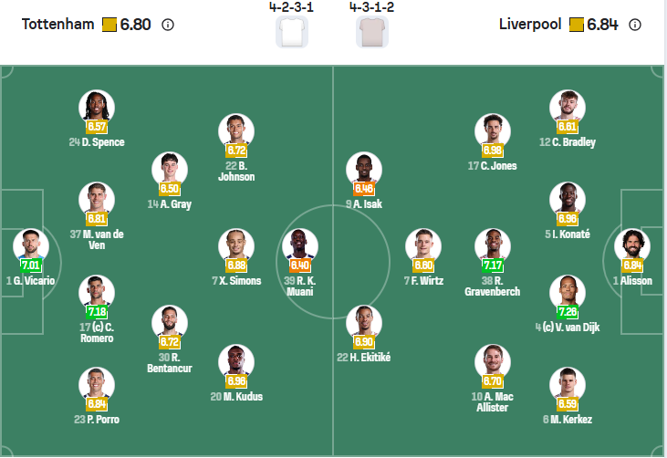 Liverpool sau chuỗi trận bết bát đã làm tốt hơn thời gian gần đây, họ bất bại trong 5 trận gần nhất và thắng 3 trong số đó, đặc biệt thầy trò HLV Arne Slot đã giữ sạch lưới ở 2 trận gần đây, điều mà trước đó họ không thể làm được. Đây là điều giúp các cầu thủ tự tin hơn và họ vẫn có thể hướng đến một mùa giải tích cực, trước mắt Liverpool cần tiếp tục giành chiến thắng bởi vị trí hiện tại chưa khiến người hâm mộ hài lòng. Vậy nên 3 điểm là điều đội khách hướng đến trận này, trước chủ nhà Tottenham không có phong độ tốt thì khả năng Liverpool sẽ ra về với 3 điểm trọn vẹn.